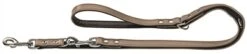 Hunter Looplijn Voor Hond Verstelbaar Basic Nickel Beige Nappaleer Zwart Onderlegd 1,3×200 Cm
