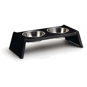 Beeztees Dubbele Voerbak Delish Antraciet – Hondenvoerbak – 33x16x9 cm direct bestellen in onze webshop! Deze stevige Beeztees voerbakken komen in een handige houder van stevig kunststof. Door de gladde oppervlakken zij zowel de bakken als de houder eenvoudig te reinigen. Bovendien zijn de voerbakken vaatwasserbestendig. Ook is er anti-slipmateriaal gebruikt om te voorkomen dat het geheel schuift tijdens  het eten of drinken. In de houder zijn rubberen ringen gebruikt zodat er geruisloos gegeten kan worden. . Alle Beeztees voor uw Hond uit voorraad leverbaar!