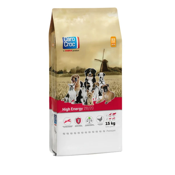 Carocroc High Energy (28/20) Hondenvoer is voeding voor honden die extreme prestaties moeten voldoen. * Licht verteerbare en gezonde voedingsstoffen * De juiste energetische waarde * Draagt bij aan een gezonde huid en vacht
