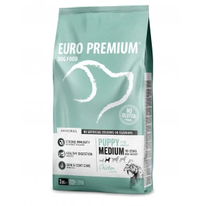 Euro Premium Medium Puppy Chicken & Rice hondenvoer is een complete hondenvoeding van topkwaliteit met een hoge verteerbaarheid voor opgroeiende puppies. Het voer is geschikt voor puppies van middelgrote rassen met een gewicht tot 25 kg hebben. * Bevat bouwstoffen voor een goede ontwikkeling * Draagt bij aan een gezonde en glanzende vacht * Complete voeding