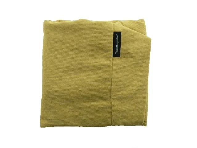 Hondenkussen hoes in een zeer zware kwaliteit meubelstof in een vrolijke maïs gele tint. De afneembare poly/katoenen hoes is op 40°C wasbaar.