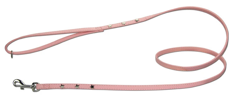Hondenriem Twinkle Little Star Pink/Silver Een mooie roze kunstleren hondenriem die prachtig is gedecoreerd met zilverkleurige sterren. Lengte 140 cm. Breedte 10 mm.