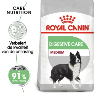 Royal Canin Medium Digestive Care hondenvoer is licht verteerbaar hondenvoer voor volwassen middelgrote honden met volwassen gewicht van 11 tot 25 kilo. Royal Canin Medium Digestive Care adult hondenvoer stimuleert: * Een gezonde huid * Een goede spijsvertering * Een verbeterde ontlasting